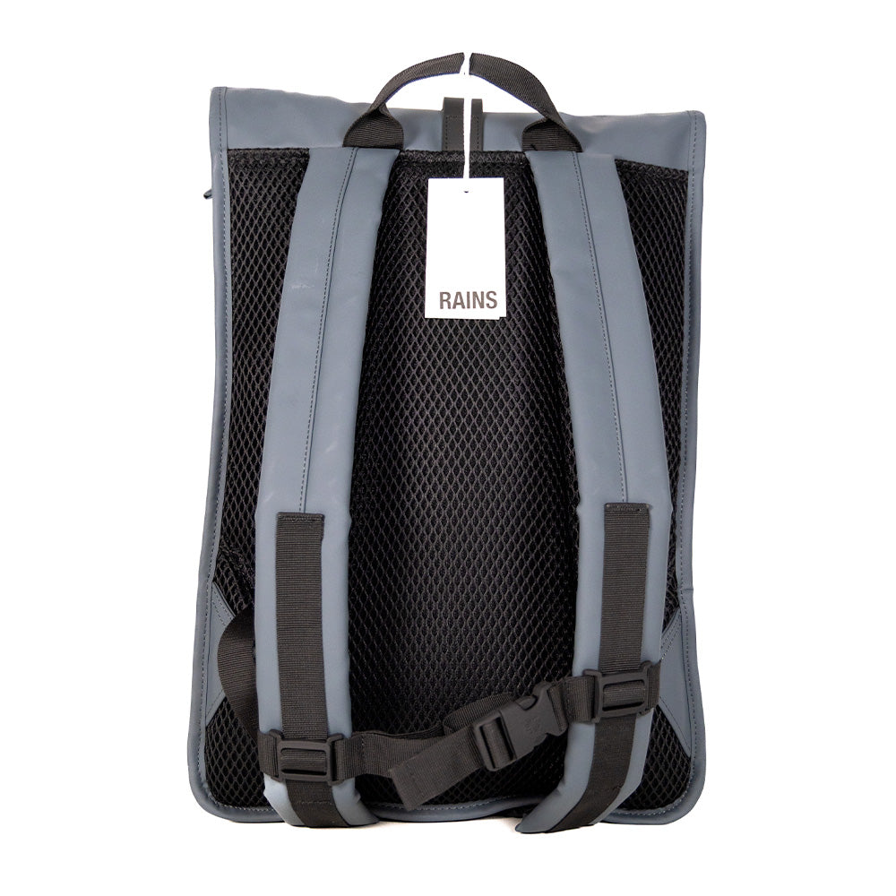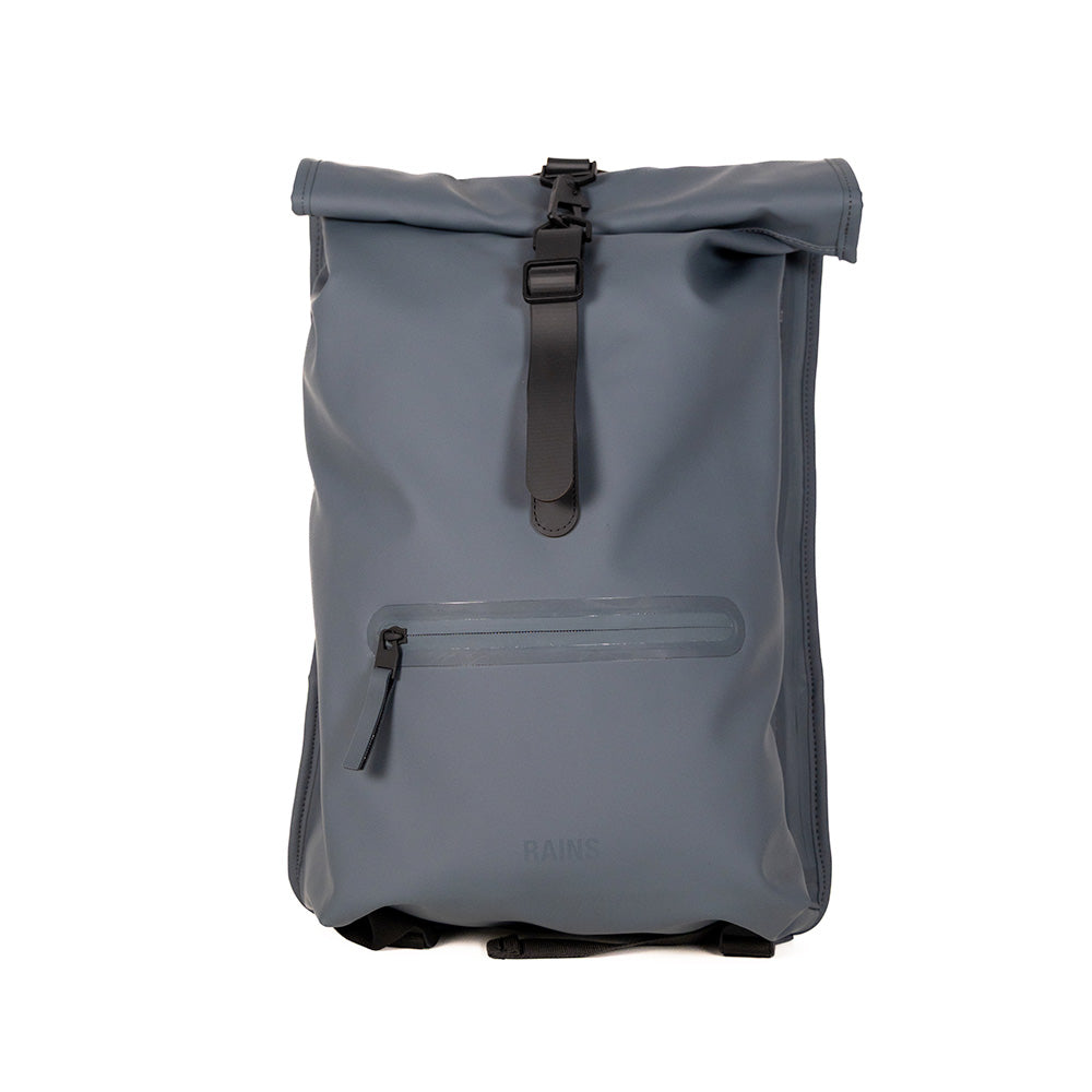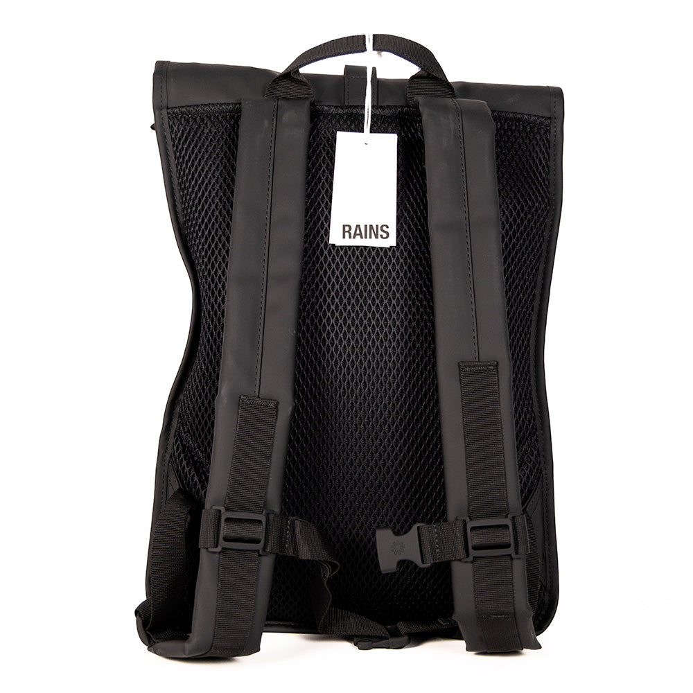 Le Rolltop Rucksack est confectionné en tissu PU emblématique et imperméable de Rains, offrant une résistance et une durabilité optimales pour un toucher ultra-doux.